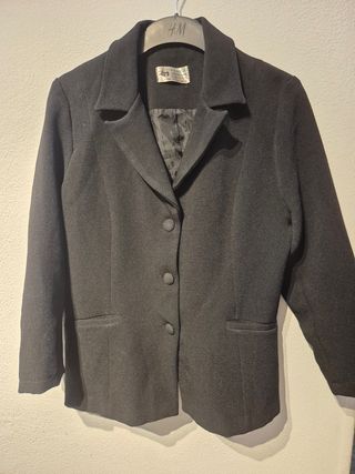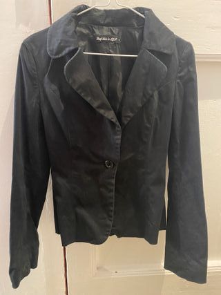 11- Chaqueta americana Talla 48 negra Bershka. Ref.11. Se hace oferta por la compra de mas abrigos, chaquetas y/o americanas de mi cuenta wallapop, -20% por la compra de 2, -30% por 3. Pueden indicar en un mensaje los numeros de referencia de las que se quieren.