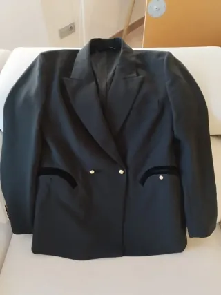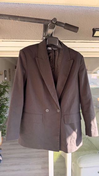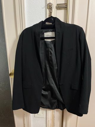 Americana elegante de la marca Zara en color negro. es como una S - Diseño clásico con solapas. - Cierre de dos botones. - Bolsillos frontales. - Forro interior.