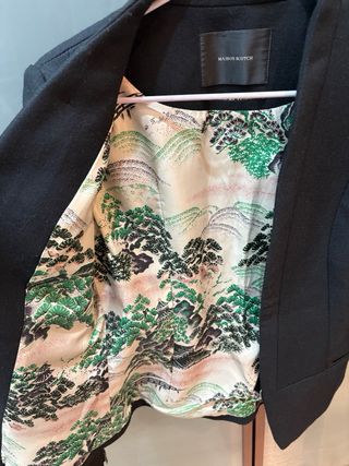 Americana elegante de Mango. - Diseño clásico. - Forro interior con estampado de lunares.