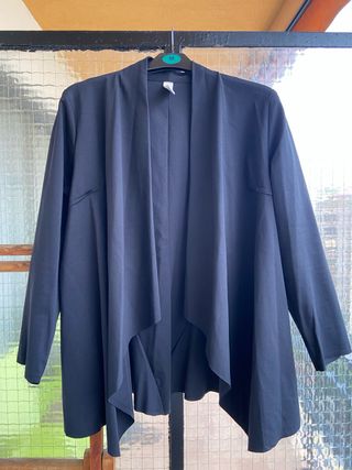 Americana de corte moderno y elegante. - Diseño abierto tipo cascada. - Manga larga. - Tejido fluido y cómodo. - Con bolsillos