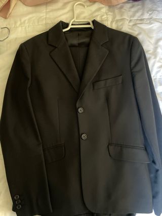 Americana de vestir en color negro. - Talla 40 (L). - Diseño clásico con solapas. - Cierre de dos botones. - Bolsillos frontales con solapa. - Puño con tres botones. pantalones a juego disponibles