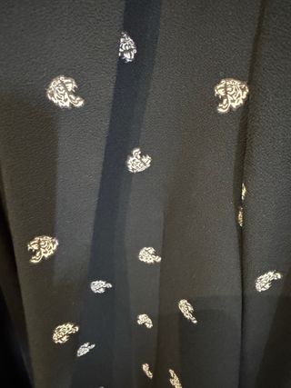 Americana negra con un llamativo estampado de tigres. - Diseño de cuello solapa. - Cierre frontal. - Manga larga.