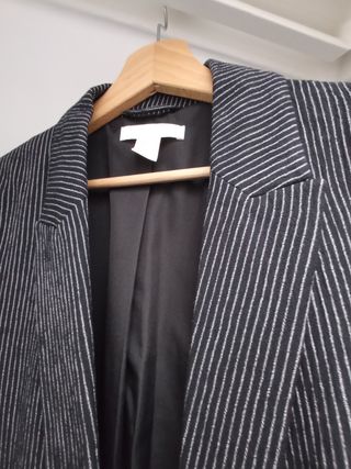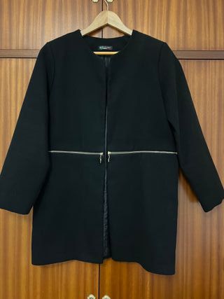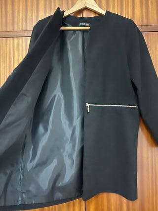Americana larga de corte clásico. Una prenda versátil y elegante. - Cierre de un botón. - Bolsillos frontales con solapa. - Cuello solapa de muesca. A estrenar. Talla xs,pero da bastante talla. He perdido ticket de compra.Está con la etiqueta.Comprado hace 40 días.