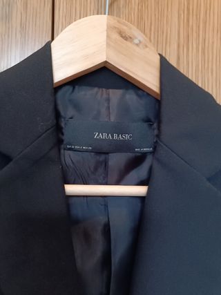 Americana de vestir de la marca Zara en color negro. Un clásico para cualquier armario. - Diseño con solapa. - Cierre de un botón. - Bolsillos frontales.