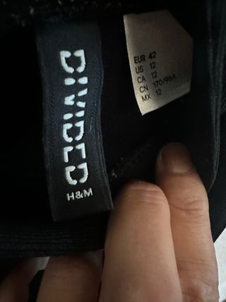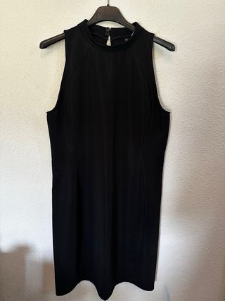 Precioso vestido negro de H&M Divided, talla XL (equivalente a una 42 europea o 14 americana). Es un vestido elegante y sencillo, ideal para cualquier ocasión. - Diseño de cuello alto. - Sin mangas. - Corte entallado.