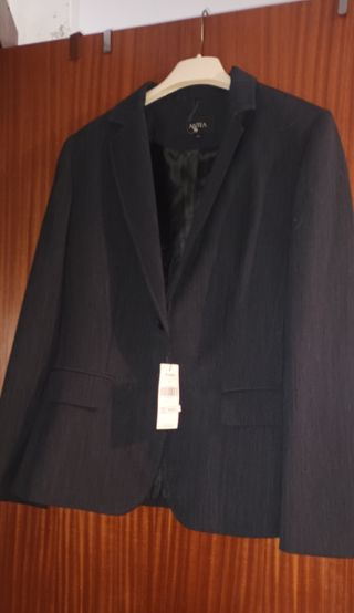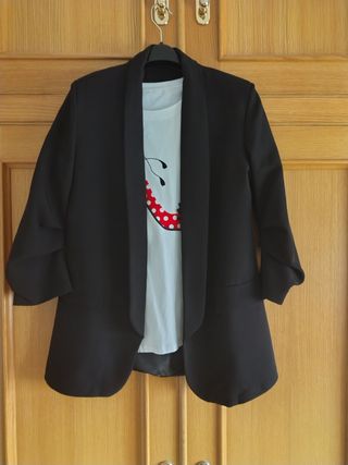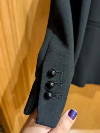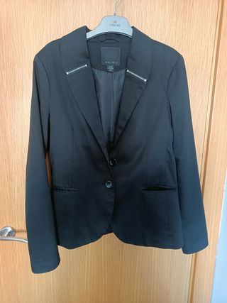 Americana elegante negra sin estrenar. Pone 34 pero seria una 36. - Cierre de un botón. - Bolsillos frontales. - Diseño entallado. Si se quiere la blusa también (sin estrenar) solo 5€ más.