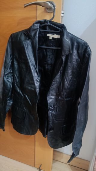 Elegante americana de cuero para mujer. Precio original en fabrica 200€. Impecable - Corte clásico de tres cuartos. - Diseño impecable. - Cierre de botones.