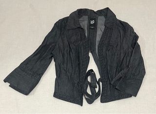 Americana de estilo tejana en tono azul. Un clásico versátil para cualquier ocasión. - Diseño tipo blazer. - Costuras visibles en contraste. Preciosa Americana estilo Tejana en color Gris. Casi nueva con muy poco uso. De la prestigiosa marca PILAR RUEDA. Talla 46/48