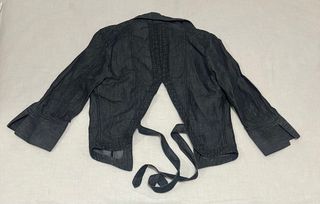 Blazer/americana tejana en color azul oscuro. Manga larga, cuello en solapa, cierre con cordón cruzado y espalda descubierta Diseño único de Kristina Popvitch Paris