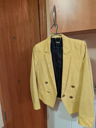 Americana de Sfera en color amarillo, talla M. Un básico elegante para cualquier ocasión. impecable, solo puesto una vez a un evento. - Cierre de un botón. - Bolsillos frontales. - Cuello solapa.