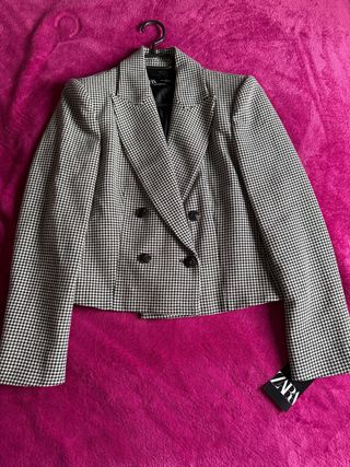 Americana corta de Zara con un estampado clásico. - Diseño cruzado con doble botonadura. - Corte entallado. - Mangas largas.
