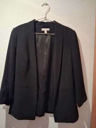 Americana elegante de H&M para mujer. - Diseño abierto. - Bolsillos frontales falsos - Manga tres cuartos. Talla 40