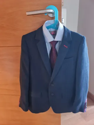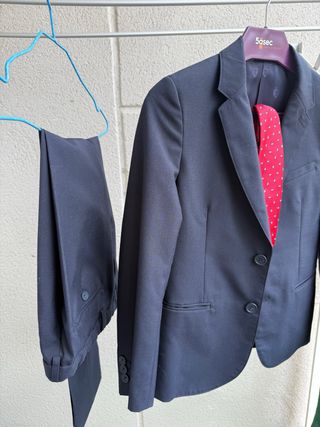 Conjunto de traje para niño. - Americana azul. - Pantalón azul. - Camisa blanca easy iron. Un solo uso, en muy bien estado.