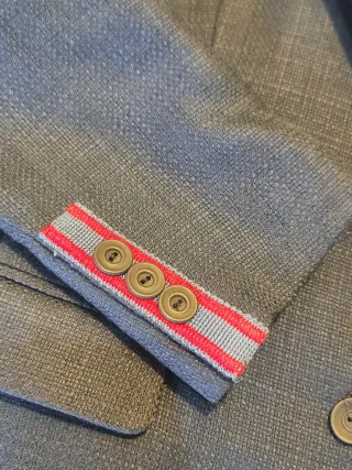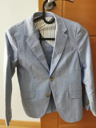 Americana de vestir para comunión o eventos especiales, talla 164. - Color gris y azul. - Cierre de dos botones. - Bolsillos frontales. - Camiseta interior incluida Si quieren más fotos, puedo añadirlas