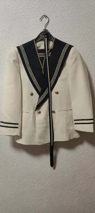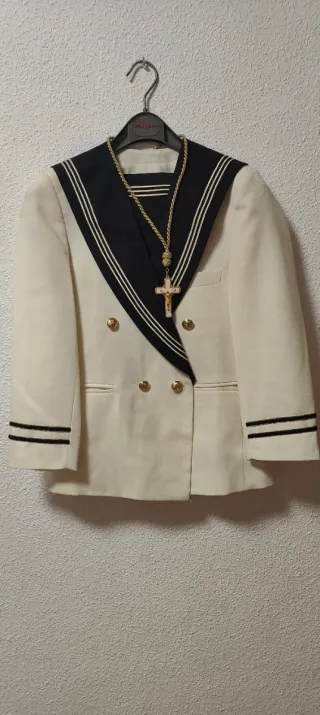 Traje Comunión Marinero Clásico - Talla 8 Vendo traje de Primera Comunión. El conjunto está en perfecto estado de conservación, sin enganchones ni roturas. Incluye: Casaca con detalles de ancla bordada, pantalón a juego y cordón de gala blanco con silbato. Estado: Muy bien cuidado. Solo necesita un lavado/planchado para estar impecable (de ahí su precio rebajado). Medidas: Si estás interesado, puedo pasarte medidas de hombros y largo de pantalón. ¡Ideal para que tu hijo vaya impecable ahorrando en el presupuesto de la comunión!