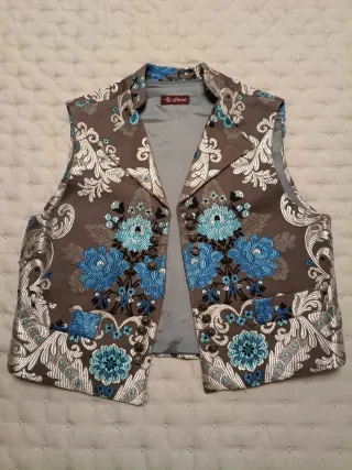 Chaleco de estilo fallero con un vibrante estampado floral. - Diseño con cuello - Cierre de botones - Bolsillos frontales - Tejido con detalles brillantes