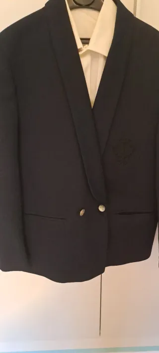 Chaqueta infantil Bus Stop Classic – Talla 12 Se vende chaqueta infantil de la marca Bus Stop Classic en color azul marino, con corte cruzado y botones metálicos dorados. Diseño elegante y tradicional, ideal para ceremonias, uniformes escolares o eventos especiales. La prenda dispone de solapas anchas, doble botonadura y forro interior completo. Estado general muy bueno.