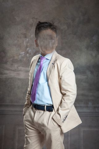 Traje hecho a medida de niño, de 14 años, delgado. Comprado en una tienda local de Móstoles.