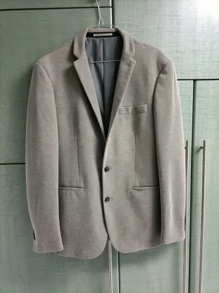 Vendo chaqueta americana, está nueva sin estrenar, color gris clarita. Tejido de lana fina haciendo aguas, muy elegante. Forro interior negro. Un bolsillo interior. Talla: XL. Marca: Daily Outfit made in Turkey de Essentials Zara. Se envían más fotos si lo solicitan. Vendo en Coruña ciudad. Precio 15 euros.