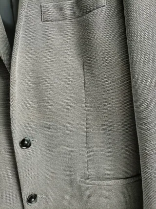 Nueva, para estrenar. Precio en tienda: 275€. 52% lana, 34% seda tussah y 14% lino. Regular fit. Talla 50, que equivale a una talla M. Tiene los pespuntes de fábrica en las aberturas traseras. Fotos con medidas.