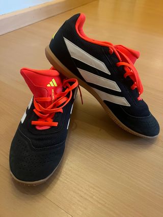 Zapatillas de fútbol sala Adidas Predator Club. - Color negro y rojo. - Talla 43 1/3. 9 1/2 americano, 9 británica. Están como nuevas, solamente tienen un día de uso, poco más de 60 minutos de uso.