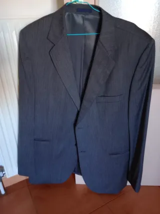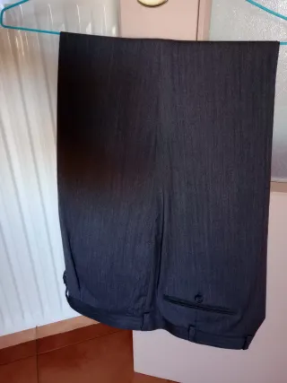 Conjunto de levita, pantalón, tirantes y zapatos, perfecto para eventos formales. Chaqué talla: 48, medida hombros:43 cm. Longitud levita:108 cm. Longitud manga: 58 cm. Pantalón talla: 46 medida cintura: 47 cm. largo 99 cm. tiene bajo para sacar. Lleva botones para tirantes. Zapatos talla 40 marca Vagabond. Precio: levita sola: 129€ pantalon : 59€ zapatos: 59€ tirantes de regalo con levita y pantalón Precio del conjunto: 219€