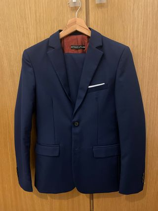 Conjunto de traje azul marino completo para niño de 14 años, con americana y pantalón. Nunca ha sido usado está nuevo, cualquier cosa no dudes en escribirme. - Chaqueta con solapa de muesca. - Bolsillos de solapa en la parte delantera. - Cierre de un botón. - Puños con botones. - Forro interior de color burdeos.