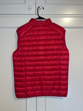 Chaleco acolchado con capucha. - Cierre de cremallera frontal. - Dos bolsillos laterales con cremallera. - Diseño ligero y abrigado.