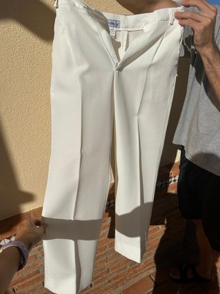 Traje completo con cinturón, corbata y camisa. Camisa talla 34. Chaqueta y pantalón talla 14 Pantalón: 92 centímetros de largo (se le puede sacar). Cintura 67cm, con gomas elásticas para aumentar un poco el volumen