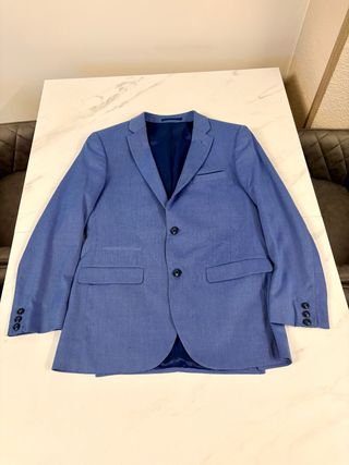 Traje de lana y licra de la marca Silbon, en perfecto estado tras un solo uso. - Chaqueta con dos botones. - Pantalón de vestir. - Diseño clásico y elegante.