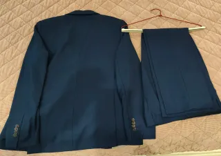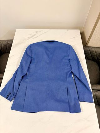 Elegante traje de dos botones para hombre de la marca Boston. Talla pantalon 44. Talla americana 50. Medidas: Manga: 55 cm Largo: 74 cm Hombros: 50 cm Pantalon: 96 cm - Color azul. - Solapa de muesca. - Dos bolsillos frontales. - Puños con tres botones.