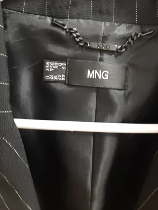Elegante americana negra de Mango, perfecta para cualquier ocasión. - Diseño moderno sin cuello. - Corte entallado. - Cierre abierto. - Detalle de costuras decorativas en la parte frontal. medidas de largo 52cm ancho altura pecho 44cm