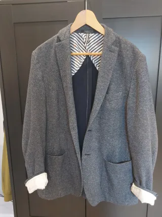 Americana de vestir de la marca Springfield en color gris. - Cierre de dos botones. - Bolsillos frontales con solapa. - Cuello solapa. - Aberturas traseras laterales. - Talla L. - Como nuevo.
