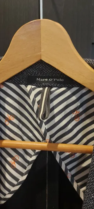 Americana de caballero de la marca Marc O'Polo en color gris. Presenta un diseño clásico y elegante, ideal para ocasiones formales o informales. - Tejido texturizado. - Cierre de dos botones. - Bolsillos frontales. - Puños con detalle de forro a rayas.