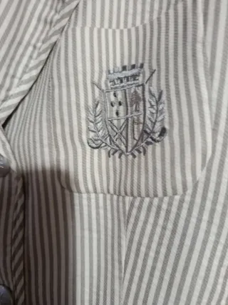 Americana de la marca Paca García con un diseño de rayas verticales. - Cierre de dos botones. - Dos bolsillos delanteros con solapa. - Detalle de escudo bordado en el pecho.