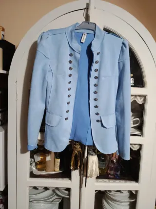Chaqueta tipo americana de color azul. Presenta un diseño clásico y elegante. -Talla 12. 152cm -Nueva sin uso. - Cierre de doble botón. - Bolsillos frontales. - Forro interior con estampado de puntos. -Envio a cargo comprador. -Precio Tienda 49,95€