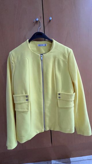 Americana de Stradivarius en color amarillo. - Diseño moderno con cuello redondo. - Cierre de cremallera frontal. - Dos bolsillos de solapa con botones en la parte delantera.