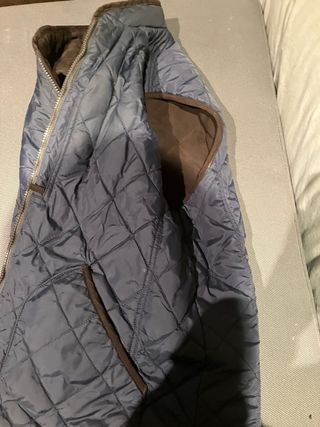 Chaleco reversible con un diseño acolchado. - Exterior azul. - Interior marrón.