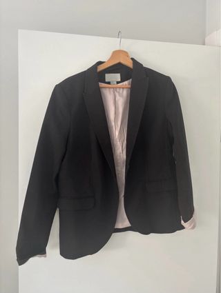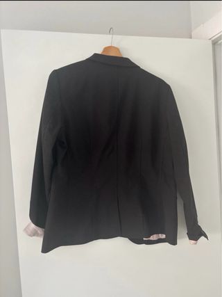 Americana de H&M en color negro con un elegante forro interior en tono rosa. marca la talla 44 pero talla pequeño yo le doy una 42 - Diseño clásico. - Bolsillos frontales. - Cuello solapa.