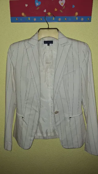 Americana juvenil de Adolfo Dominguez con un diseño elegante y moderno.. Venta en persona. - Diseño de rayas verticales. - Cierre de botón. - Bolsillos frontales.