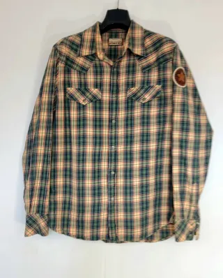 🤠 Esta prenda de Springfield (colección Free Festival) destaca por su corte clásico vaquero, cierres de botones a presión (snaps) y un parche exclusivo en la manga. Ideal para amantes del estilo Y2K y la estética americana de los 90. ✨ Estado: Usado pero en muy buen estado. 🧶 Material: 100% Algodón de alta calidad. 🎨 Diseño: Cuadros escoceses (plaid) en tonos verdes, crema y rojo. 🤘 Detalles: Botones de clic metálicos, bolsillos frontales con solapa y canesú trasero en pico. 📏 Medidas (talla XL): Hombros: 46 cm Axila a axila: 56 cm Largo total: 76 cm #Springfield #VintageShirt #WesternStyle #CowboyShirt #Y2KF 229