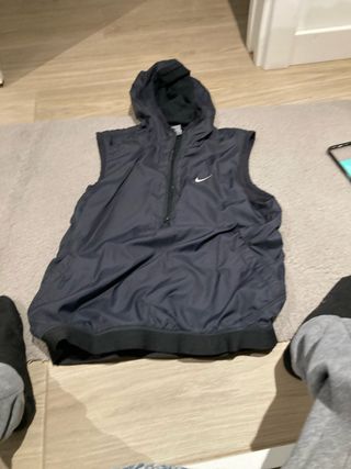 Chaleco deportivo Nike en color negro, con capucha. - Diseño sin mangas. - Cierre de cremallera parcial. - Logo de Nike en el pecho.