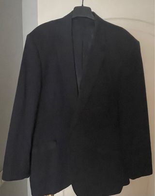 Americana de terciopelo negra de Zara Man, talla 48. Ideal para looks elegantes o eventos. Tejido suave, diseño clásico con solapa de muesca y botones frontales. Está en muy buen estado, la vendo porque me queda un poco justa. Perfecta para quien busque una prenda sofisticada y con estilo.