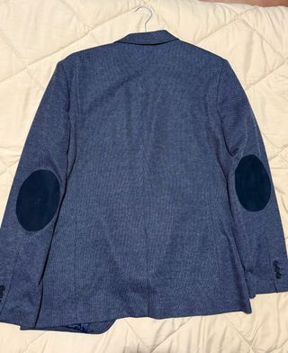 Americana azul de Cortefiel con forro estampado floral. - Cierre de dos botones. - Bolsillos delanteros. - Puños con botones. - Parches en los codos.