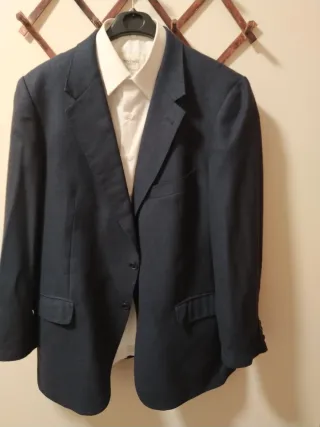 Americana de vestir en color azul, completamente nueva y sin uso. - Talla 56. - Diseño clásico con solapa. - Cierre de dos botones. - Bolsillos frontales. - Forro interior.