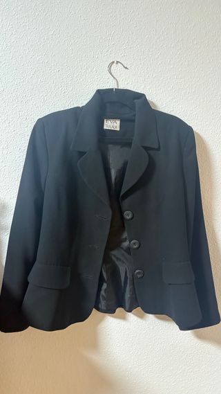 Americana de corte clásico en color negro. Cierre de dos botones.