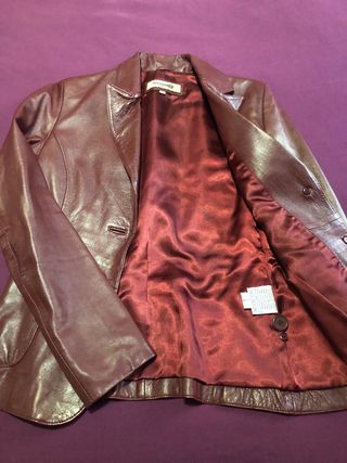 Chaqueta tipo americana de cuero. - Color granate - Marca Formula Joven.