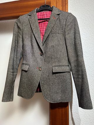 Americana de la marca Pedro del Hierro, apenas usada. Un clásico con un diseño elegante. - Patrón de cuadros discreto. - Forro interior azul. - Cierre de dos botones.