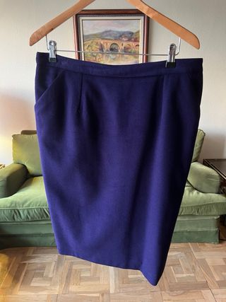 Elegante conjunto de americana y falda en color morado. - Americana con cierre de un botón. - Bolsillos delanteros con solapa. - Botones dorados. - Falda a juego.