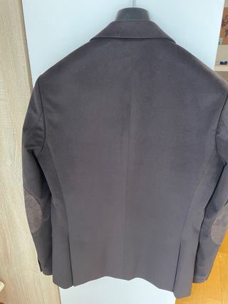Americana elegante con un diseño moderno. Tiene mucho cuerpo y viste mucho - Corte entallado que realza la figura. - Solapas del cuello de polipiel - Cierre frontal por un botón - Lleva hombreras - Los 3 botones laterales de las mangas se desabrochan - Es una XS pero teniendo una S la he seguido usando - Atrás, abajo, en la parte del medio tiene una abertura - Lleva forro en el interior La he usado ocasionalmente pero la conservo como el primer día